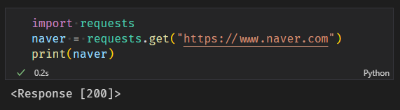 requests.get의 리턴값이 200이면 정상, 400 이상의 숫자가 나오면 비정상이다.