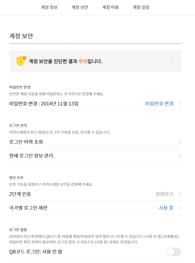 이런 화면이 나오고 카카오메일 아이디와 비밀번호를 입력하고 로그인 버튼을 누르면 로그인이 된다. 간혹 2단계 인증이 뜨는 경우가 있는데, 2단계 인증은 생략가능하므로 꺼진 상태로 로그인해보자.
